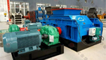 它是利用兩臺電機帶動兩副輥軸對物料進行擠壓,研磨的工作。對輥破碎度小于80mm、成品粒度要求50目-20mm的細碎作業